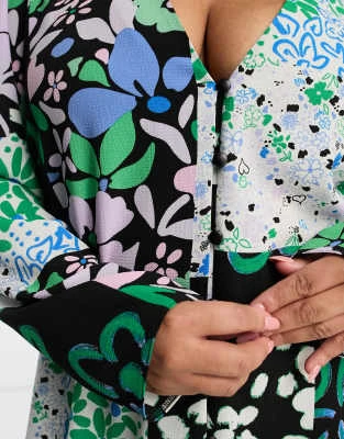 ASOS LUXE Curve – Vestito Corto Da Cerimonia Con Paillettes E Fiori Multicolore