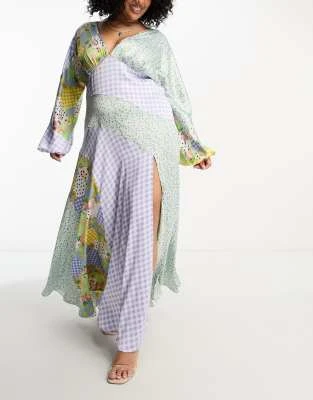 ASOS Edition Curve – Vestito Corto Con Maniche A Campana E Corpetto Ricamato Giallo