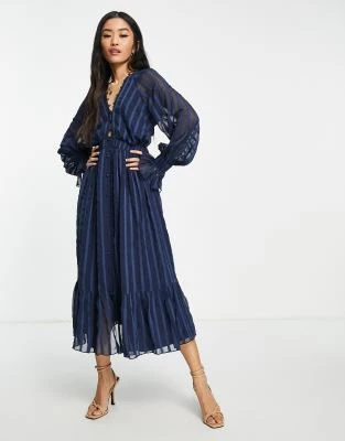 ASOS DESIGN – Vestito Milkmaid Midi Nero E Rosso A Fiori Con Dettagli Arricciati E Maniche Svasate