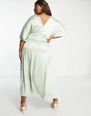 ASOS EDITION Curve – Vestito Lungo Allacciato Al Collo Con Arricciature In Raso Verde Salvia