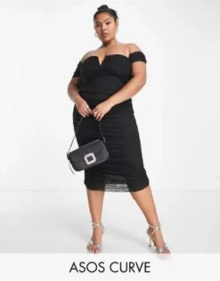ASOS DESIGN Curve – Vestito Midi In Raso Nero Con Taglio Sbieco E Laccetti