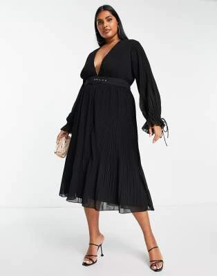 Flounce London Plus – Vestito Lungo Con Maniche Con Volant E Scollo Profondo In Raso Rosa Vivace