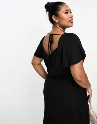 Flounce London Plus – Vestito Lungo Con Maniche Con Volant E Scollo Profondo In Raso Rosa Vivace