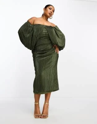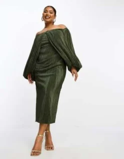 ASOS DESIGN Curve – Vestito Lungo Con Scollo Alla Bardot Plissettato Color Salvia – LGREEN
