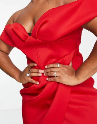 Flounce London Plus – Vestito Lungo Con Maniche Con Volant E Scollo Profondo In Raso Rosa Vivace