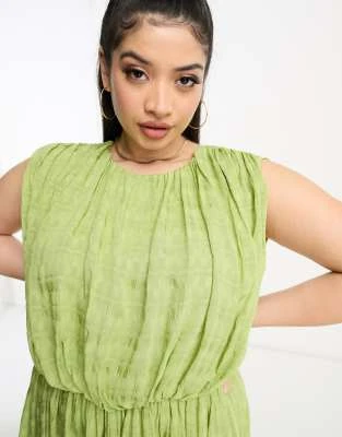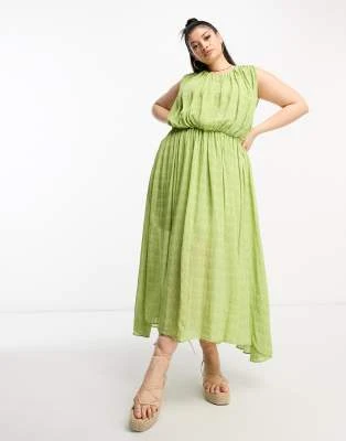 ASOS DESIGN Curve – Vestito Lungo Con Scollo Alla Bardot Plissettato Color Salvia – LGREEN