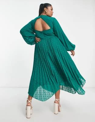 ASOS EDITION Curve – Vestito Lungo Allacciato Al Collo Con Arricciature In Raso Verde Salvia