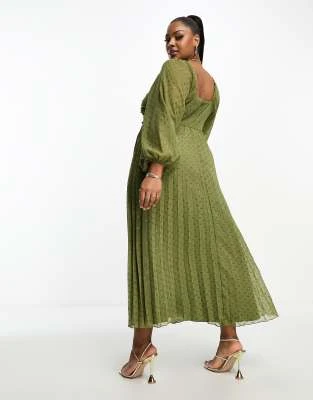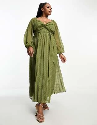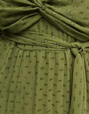 ASOS DESIGN Curve – Vestito Lungo Con Scollo Alla Bardot Plissettato Color Salvia – LGREEN