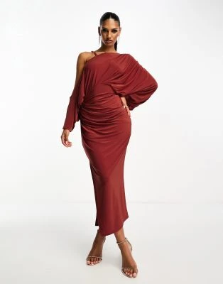 ASOS Maternity ASOS DESIGN Maternity – Vestito Midi Lilla Con Scollo Ad Anello E Maniche Con Volant