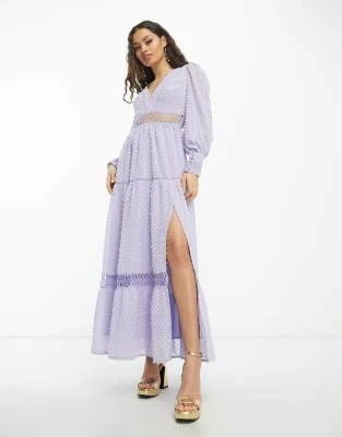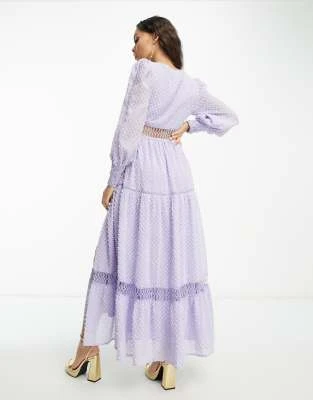 ASOS DESIGN Petite – Vestito Lungo A Pieghe E Balze Verde Salvia Con Scollo Profondo