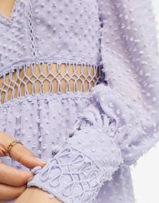 ASOS DESIGN Petite – Vestito Corto Accollato Verde Bosco In Plumetis Con Finiture In Pizzo E Ricamo