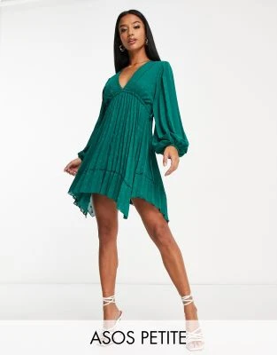 ASOS DESIGN Petite – Vestito Corto Accollato Verde Bosco In Plumetis Con Finiture In Pizzo E Ricamo