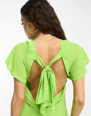ASOS DESIGN Petite – Vestito Corto Pesca Avvolgente Con Volant, Laccetti E Borchie