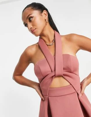 Esclusiva Pieces Petite – Vestito Corto Con Dettaglio A Fiocco, Colore Nero E Rosa