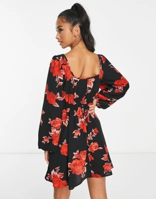 Forever New Petite – Vestito Corto Verde A Fiori Con Lacci Sulle Maniche