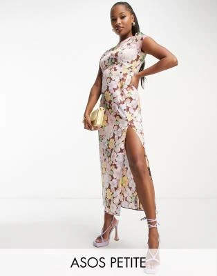 Never Fully Dressed Petite – Vestito Lungo Rosa Con Stampa “La Mer” E Maniche A Palloncino