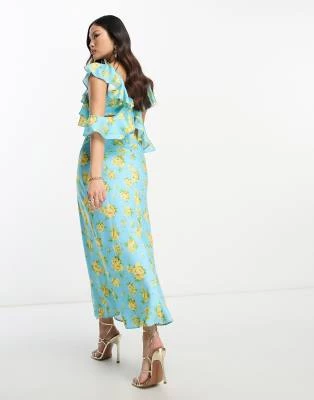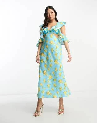 Nobody’s Child Petite – Esme – Vestito Midi Con Dettaglio Laccetti Sulle Maniche Verde A Fiorellini