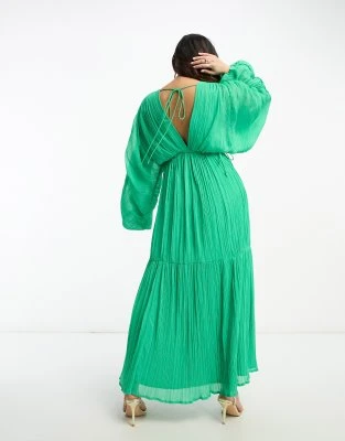 Nobody’s Child Petite – Esme – Vestito Midi Con Dettaglio Laccetti Sulle Maniche Verde A Fiorellini