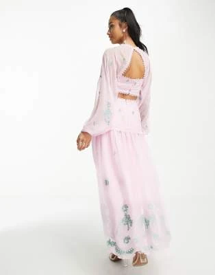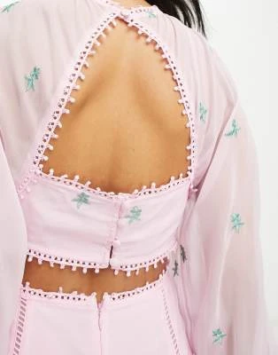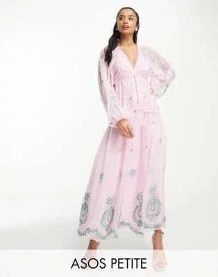 ASOS DESIGN Petite – Vestito Skater Corto In Organza Verde Ricamato Con Inserto In Pizzo