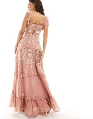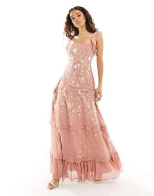 Nobody’s Child Petite – Esme – Vestito Midi Con Dettaglio Laccetti Sulle Maniche Verde A Fiorellini