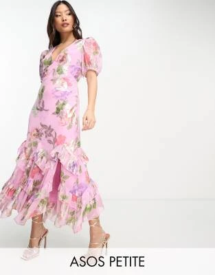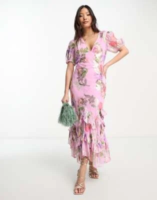 Never Fully Dressed Petite – Vestito Lungo Rosa Con Stampa “La Mer” E Maniche A Palloncino