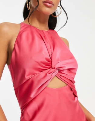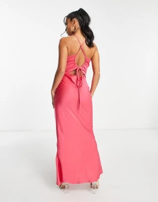 ASOS DESIGN Petite – Vestito Lungo In Rete Rosa Con Stampa A Macchie Con Spalline Sottili E Fascia