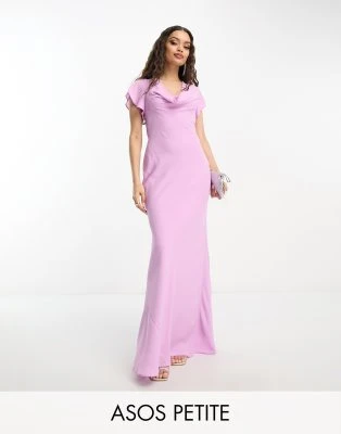 ASOS DESIGN Petite – Vestito Lungo A Pieghe E Balze Verde Salvia Con Scollo Profondo