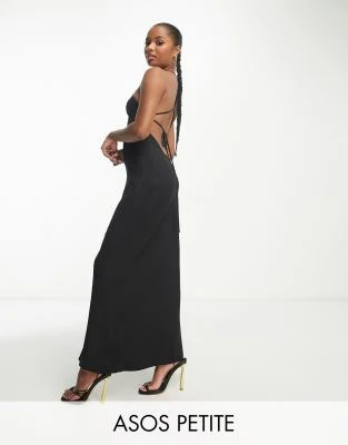 ASOS DESIGN Petite – Vestito Midi Da Ballo Di Fine Anno In Velluto Blu Navy Con Spalle Scoperte