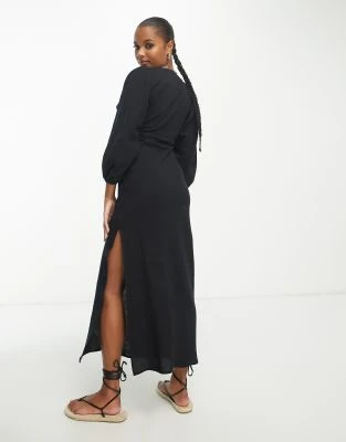 ASOS DESIGN – Vestito Da Giorno Midi Arricciato Con Maniche Ad Aletta Bianco Con Stampa Con Ciliegie