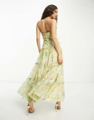 Nobody’s Child Petite – Esme – Vestito Midi Con Dettaglio Laccetti Sulle Maniche Verde A Fiorellini