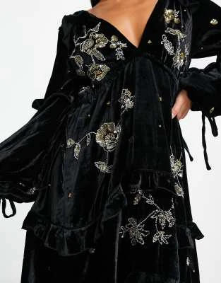 ASOS DESIGN Petite – Vestito Midi Da Ballo Di Fine Anno In Velluto Blu Navy Con Spalle Scoperte