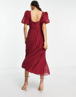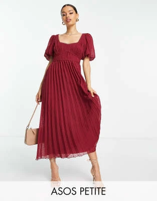 ASOS DESIGN Petite – Vestito Corto Accollato Verde Bosco In Plumetis Con Finiture In Pizzo E Ricamo