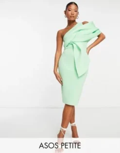 Esclusiva Lace & Beads Petite – Vestito Corto Monospalla In Tulle Avorio Con Volant Sul Fondo