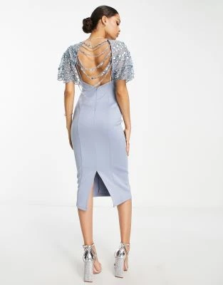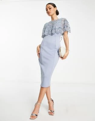 ASOS DESIGN Petite – Vestito Midi Da Ballo Di Fine Anno In Velluto Blu Navy Con Spalle Scoperte