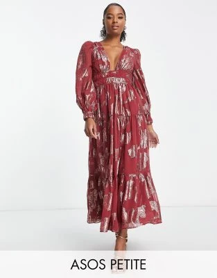 ASOS DESIGN Petite – Vestito Lungo In Rete Rosa Con Stampa A Macchie Con Spalline Sottili E Fascia