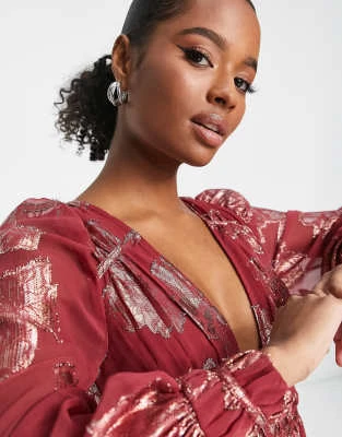 Forever New Petite – Vestito Corto Verde A Fiori Con Lacci Sulle Maniche