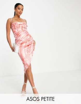 ASOS DESIGN Petite – Vestito Lungo In Rete Rosa Con Stampa A Macchie Con Spalline Sottili E Fascia