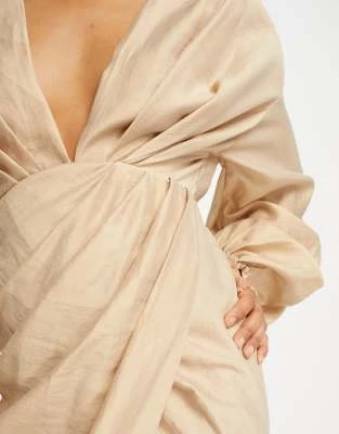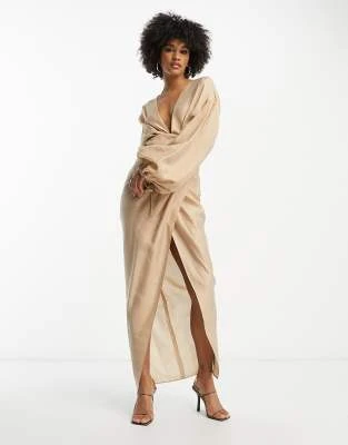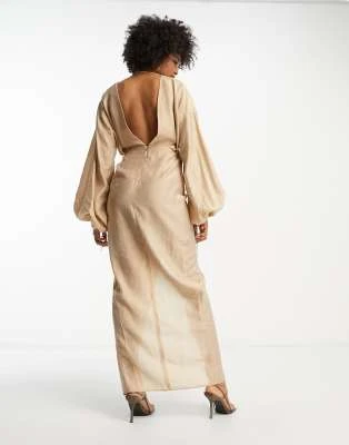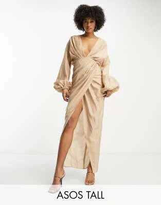 ASOS DESIGN Tall – Vestito Lungo Con Maniche A Campana Blu Cobalto Con Pieghe E Cintura