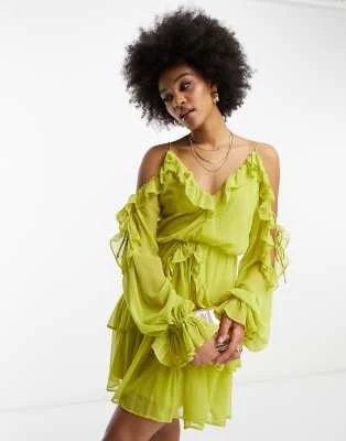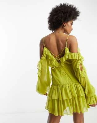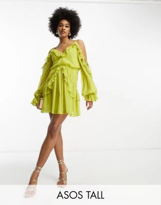 ASOS DESIGN Tall – Vestito Lungo Con Maniche Con Volant E Aperto Dietro In Raso Nero A Pois