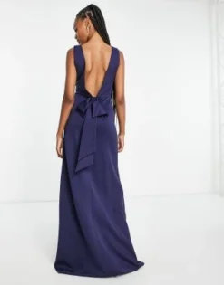 TFNC Tall – Vestito Lungo Da Damigella Con Fiocco Sul Retro Blu Navy