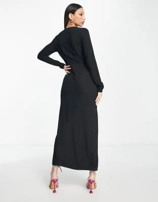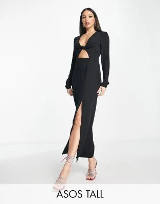 ASOS DESIGN Tall – Vestito Lungo Con Maniche Con Volant E Aperto Dietro In Raso Nero A Pois