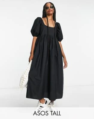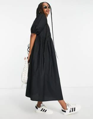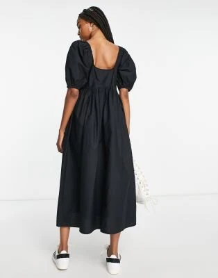 ASOS DESIGN – Vestito Da Giorno Midi Arricciato Con Maniche Ad Aletta Bianco Con Stampa Con Ciliegie