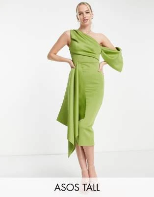 ASOS DESIGN Tall – Vestito Midi Accollato Marrone Cioccolato A Portafoglio Arricciato