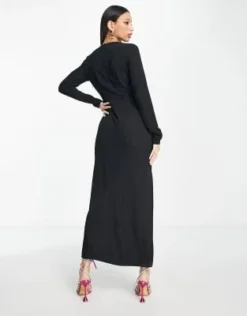 ASOS DESIGN Tall – Vestito Da Giorno Midi Nero Con Incrocio E Cut-out
