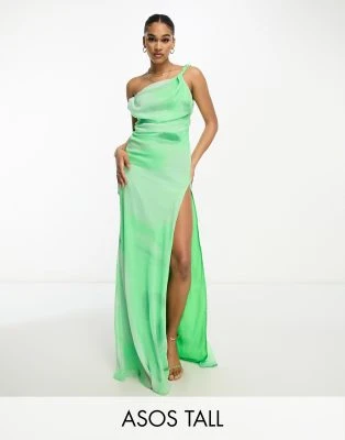 ASOS DESIGN Tall – Vestito Lungo Con Maniche A Campana Blu Cobalto Con Pieghe E Cintura