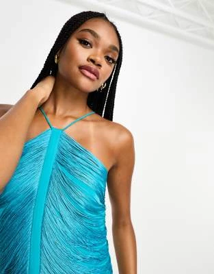 Esclusiva In The Style Tall – Vestito Lungo In Raso Blu Con Scollo Ad Anello E Lacci Sul Retro