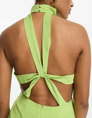 ASOS DESIGN Tall – Vestito Camicia Corto Plissé Verde Acceso Con Dettaglio Avvolgente In Vita