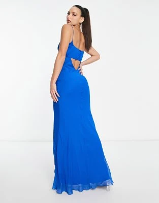 ASOS DESIGN Tall – Vestito Lungo Con Maniche A Campana Blu Cobalto Con Pieghe E Cintura