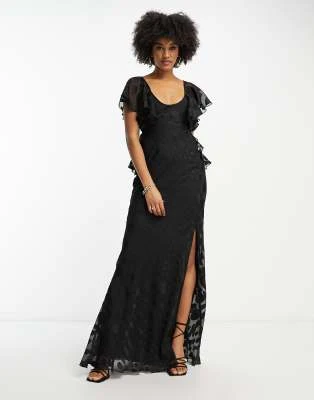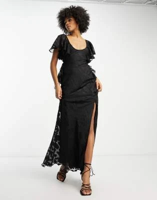 ASOS DESIGN – Vestito Lungo Plissettato Con Maniche Con Volant Rosso