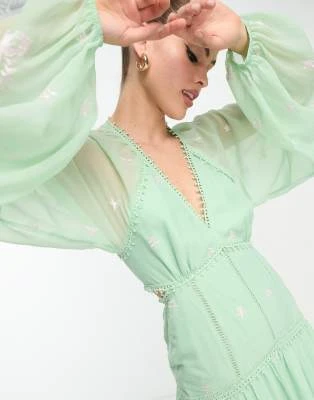 ASOS DESIGN Tall – Vestito Lungo Con Maniche Con Volant E Aperto Dietro In Raso Nero A Pois